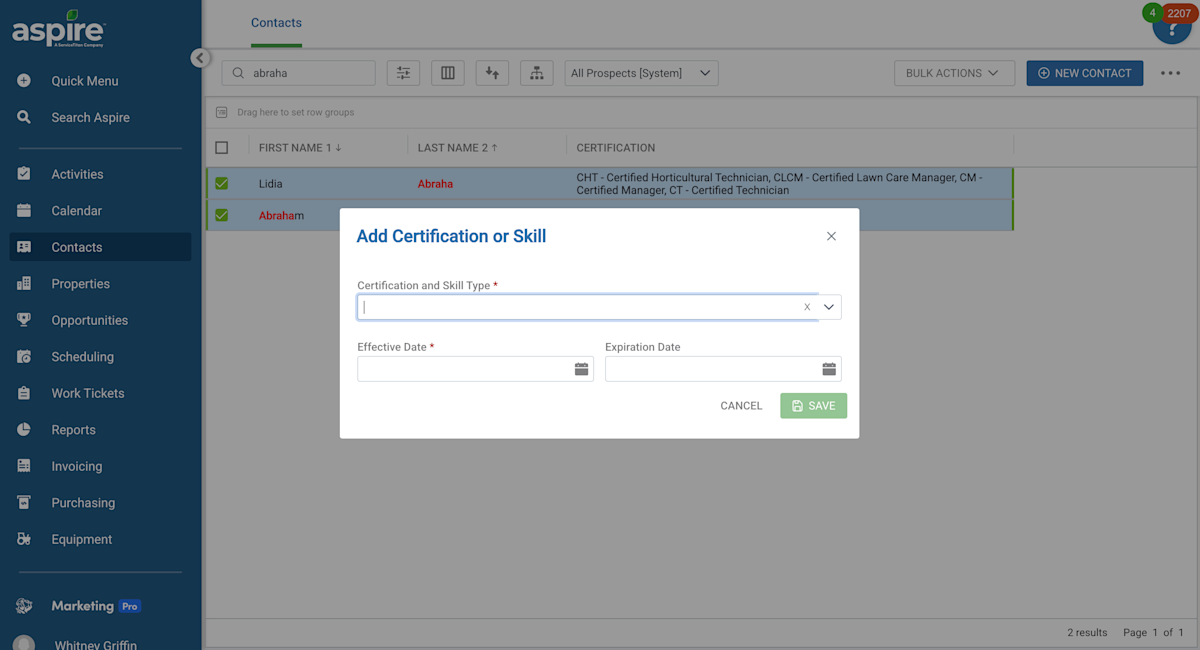 Make faster, smarter staffing decisions with clear visibility into the specialized skills and certifications required for each job. Stay ahead with timely recertifications and instantly match the right crew the moment a service is added to an opportunity.